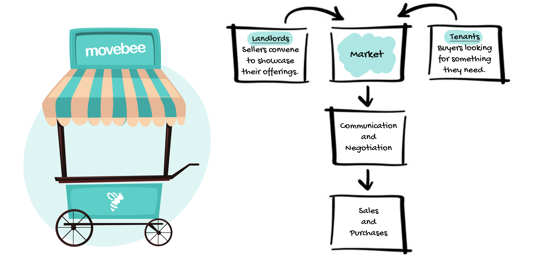 To align stakeholders, I created a conceptual model framing Movebee explicitly as a two-sided marketplace: